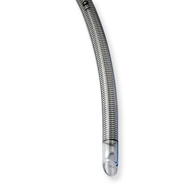 1. This plain reinforced tube is made of soft flexible plastic with stainless steel to reduce the risk of occlusion whilst in use.